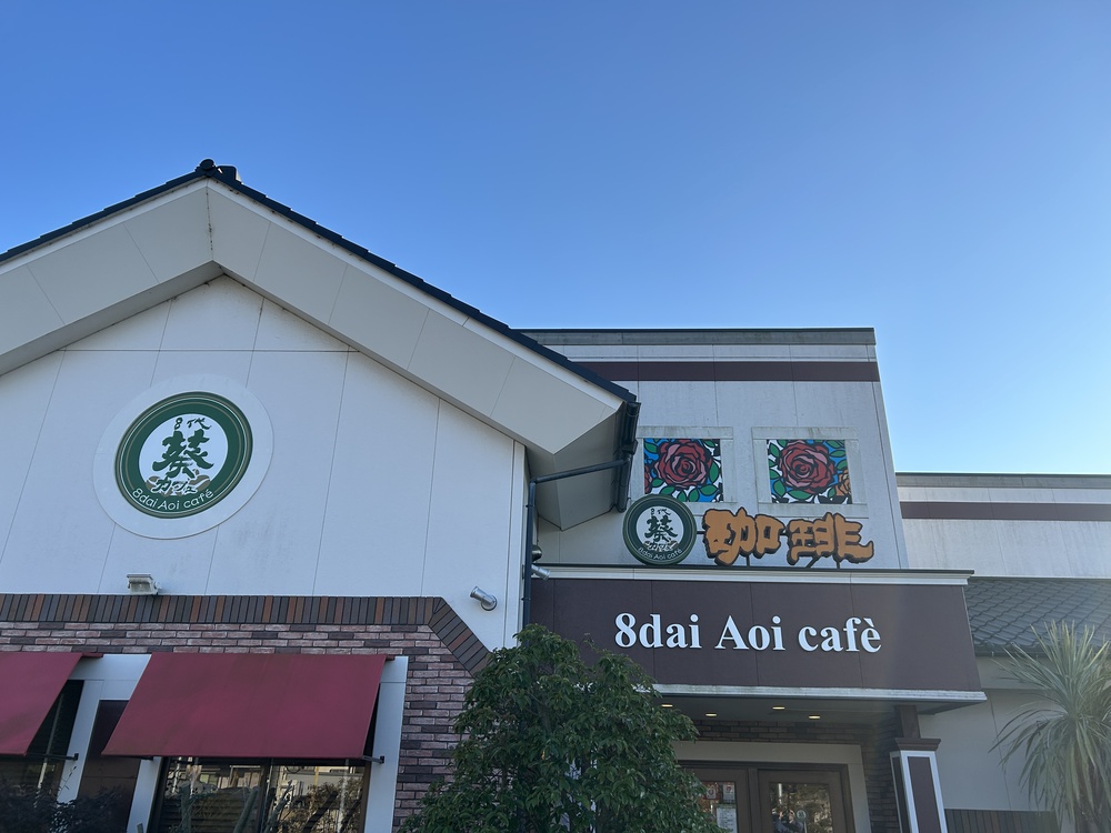 ここは、しあわせ創造企業、ばんどう太郎グループの「8代葵カフェ」。広々とした駐車スペースに車を停めて、いざ中へ歩みを進めます。