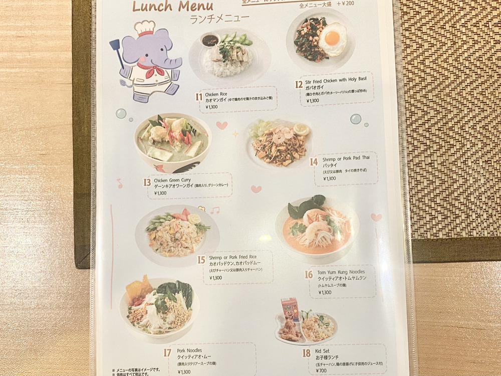 ランチメニューは、定番のタイ料理を含めて8種類から選ぶことができます。