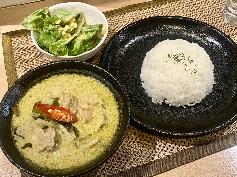 メインのグリーンカレーは、辛さを調整していない状態でもマイルドめで食べやすい印象です。