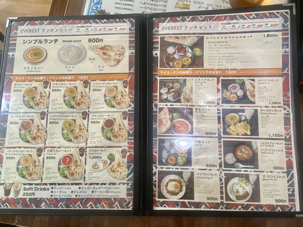 エベレスト山を始めネパール各地の写真等も飾ってあり、奥から聞こえてくる店員さんたちの和やかな母国語とスパイスの香りが相まって、五感で異国を感じながらも居心地の良い空間でした。