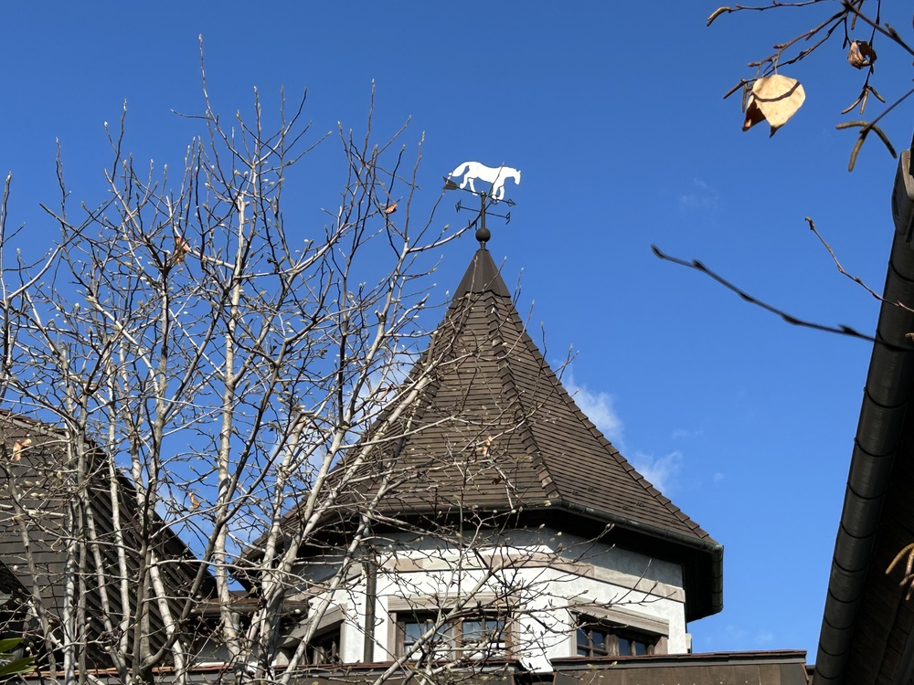 そこには、魁夷の作品に繰り返し登場する「白馬」を模した姿が、静かに佇んでいます。まるで記念館の守り神のように、風の向くままに空を旅しているようですね。