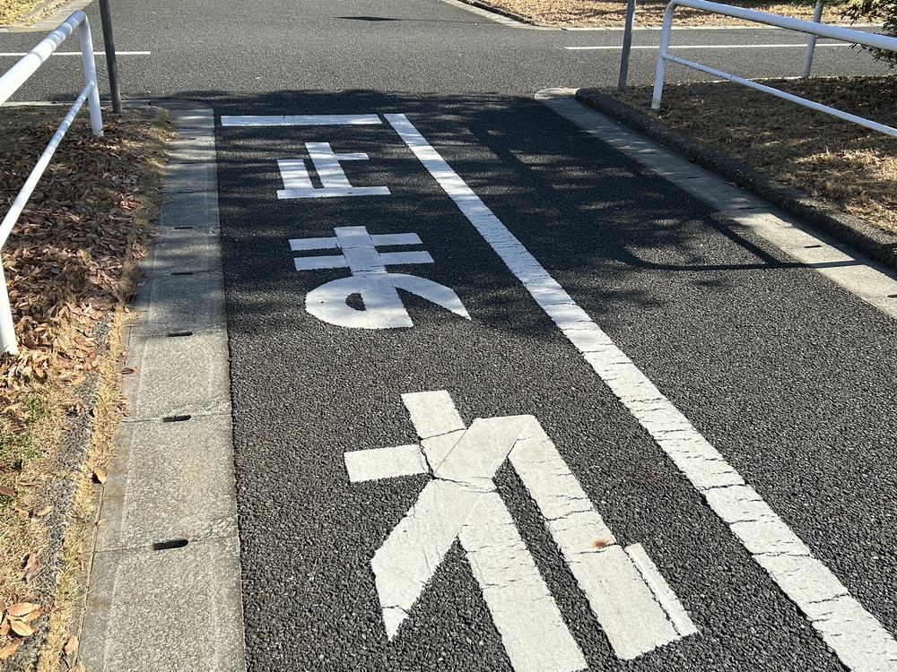 これは、自転車やゴーカートなどで走行する子どもたちに、一時停止の重要性を教えるためのものです。白い実線や破線も引かれ、交通ルールを実践的に学ぶための環境が整えられています。