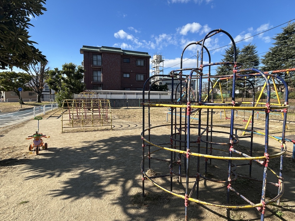 公園の一角には、子どもたちが自由に遊べる広場も併設されています。広場には、ユニークな形状をしたジャングルジムや、滑り台、ブランコなどの遊具が設置されています。