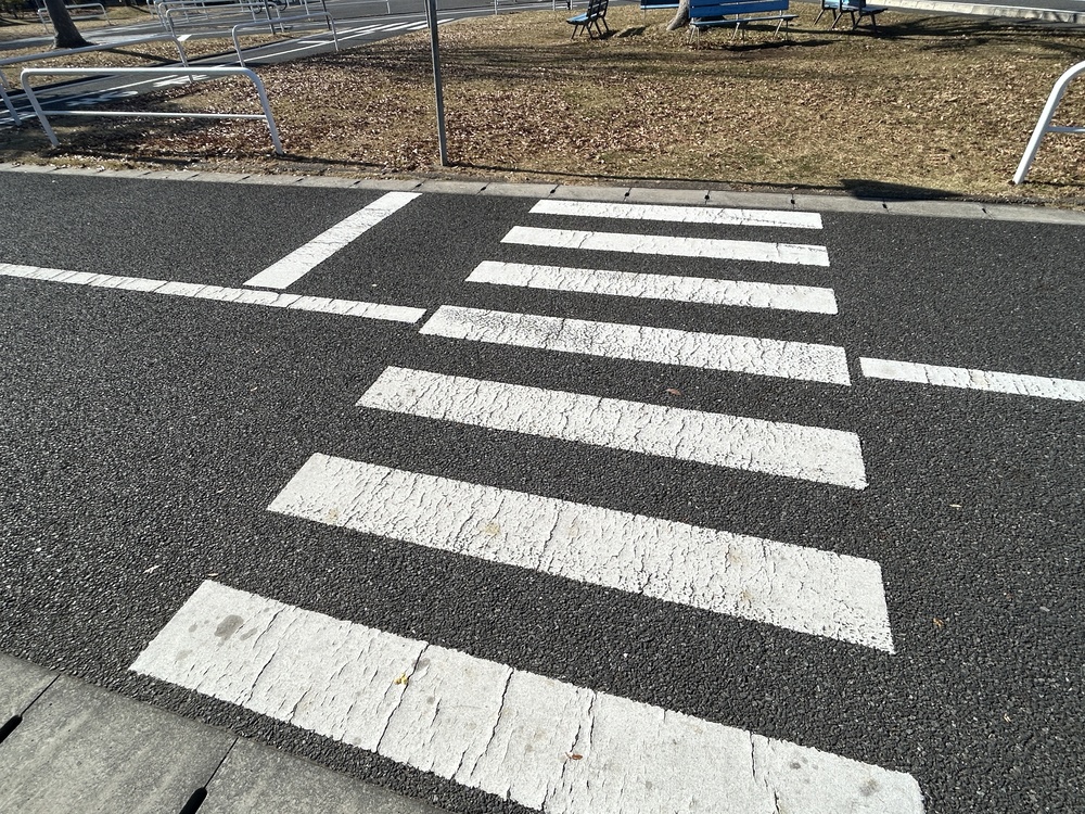 実際の道路と同様に、園内のコースには鮮やかな白線で横断歩道が描かれています。