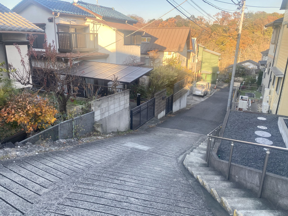 まさに住宅街の一角で、奥にはじゅん菜池緑地の木々も見えますね。