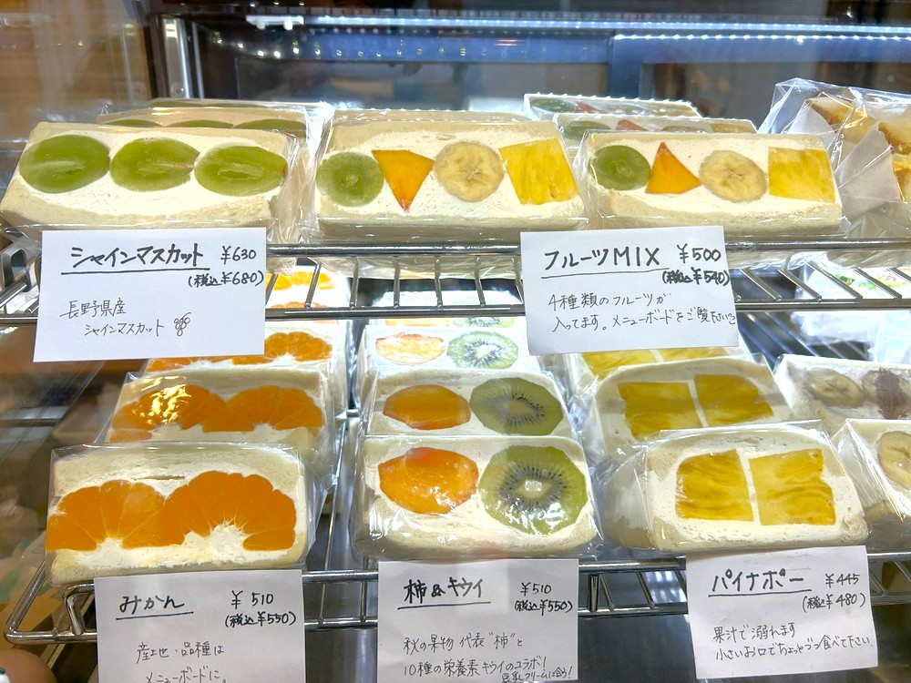 サンドイッチ、フルーツサンドどちらも品数豊富で、選ぶのに迷ってしまいます。