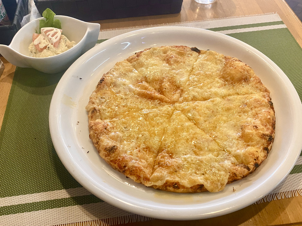 こちらが「チーズ PIZZA」と、セットのポテトサラダです!