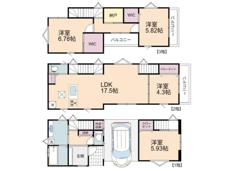 | 間取り詳細 | LDK17.5帖、洋室6.78帖、洋室5.93帖、洋室5.82帖、洋室4.3帖 | ||