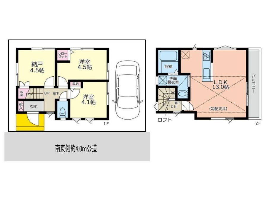 | 間取り詳細 | LDK13帖、洋室4.5帖×2室、洋室4.1帖 | ||
