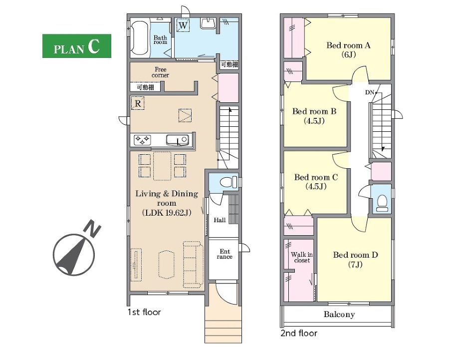| 間取り詳細 | LDK19.5帖、洋室7.25帖、洋室6帖、洋室5.25帖 | ||