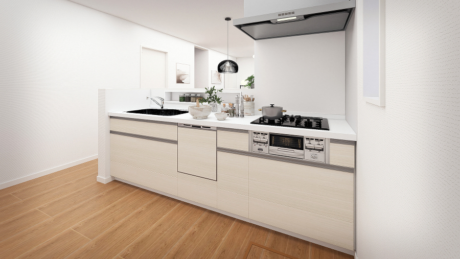 ●オープンタイプのカウンターキッチンで開放感も演出食洗機・パントリー付き