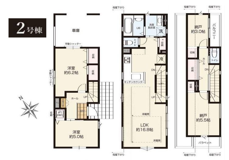 | 間取り詳細 | LDK16.8帖、洋室6.2帖、S5.5帖、洋室5帖、S3帖 | ||