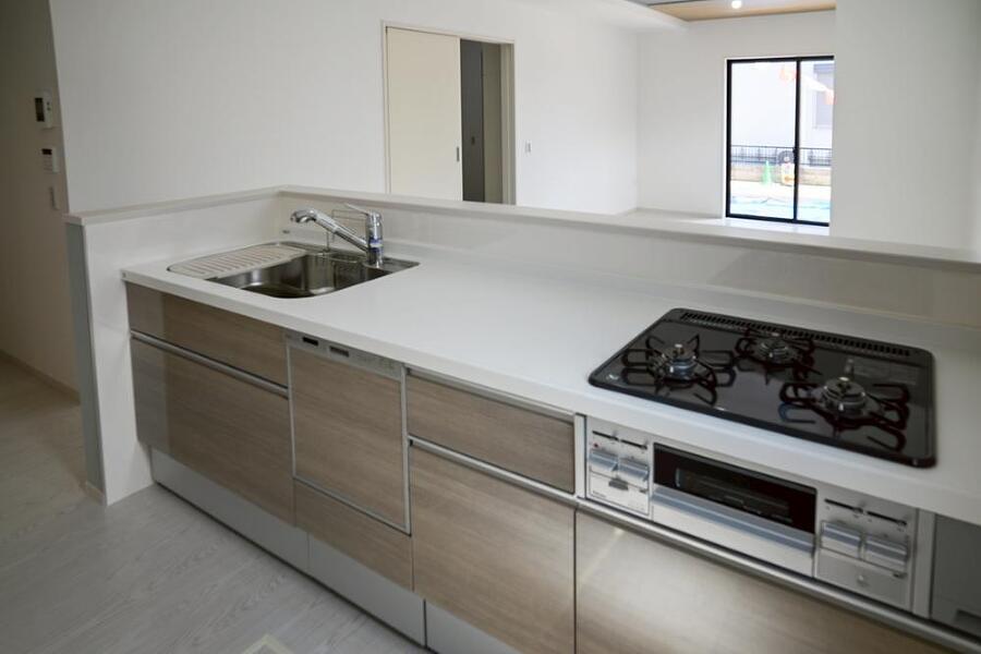 ●オープンタイプのL字型カウンターキッチンで開放感も演出 食洗機・浄水器付き