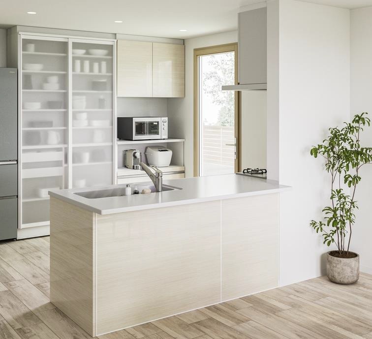 ●オープンタイプのカウンターキッチンで開放感も演出 パントリー付き