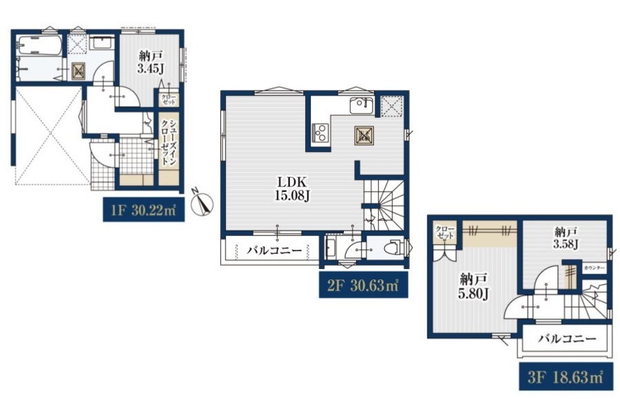 | 間取り詳細 | LDK15.08帖、S5.8帖、S3.58帖、S3.45帖 | ||