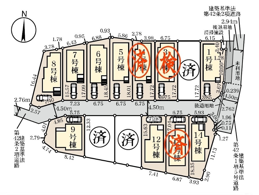 ※私道面積・持分/260㎡×1/15+10.89㎡×1/15+26㎡×1/15+10㎡×1/15 ※ごみ置場面積・持分/3.63㎡×1/15 国土法届出:不要 |