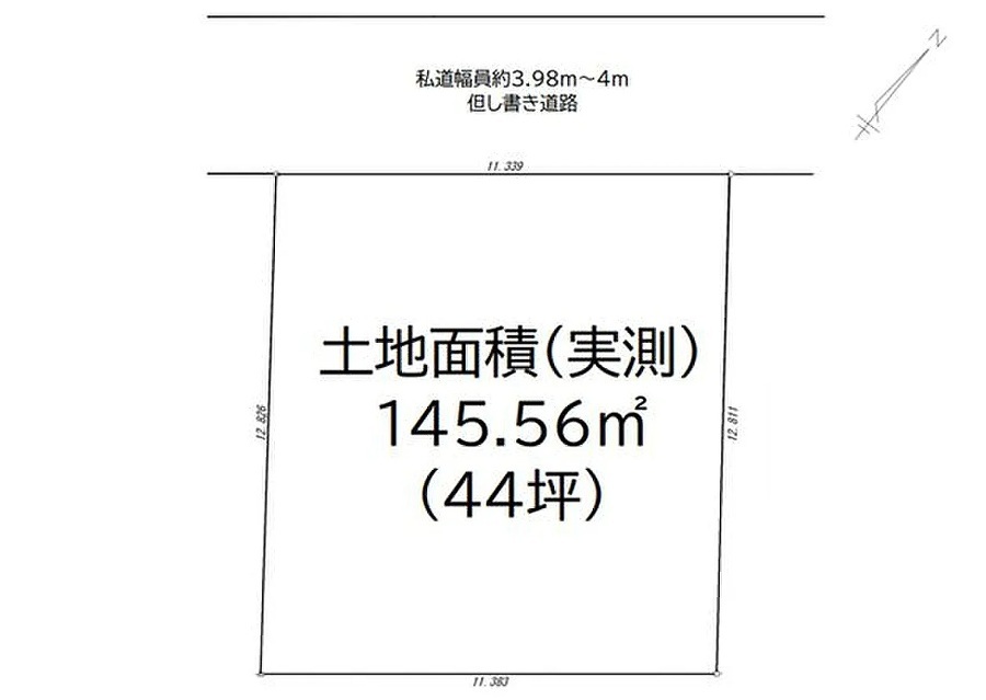 | 接道詳細 | 北西4m私道に11.33m接道 | ||