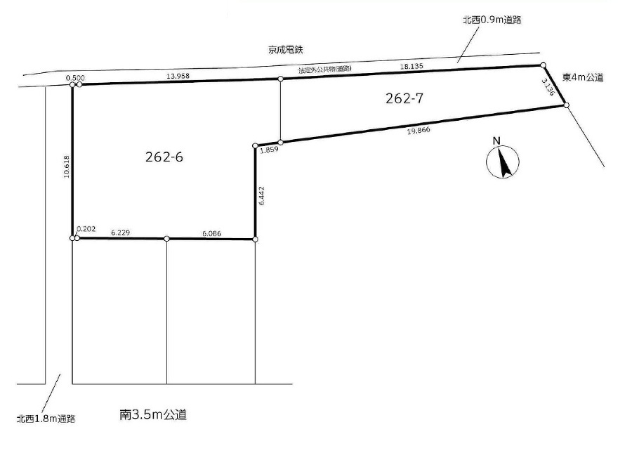 | 接道詳細 | 東4m公道に3.1m接道 西1.8m通路に10.6m接道 北0.9mに32m接道 | ||