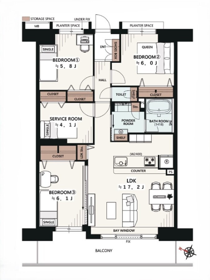 | 専有面積 | 81m² | バルコニー面積 | 14.25m²/北西側 |