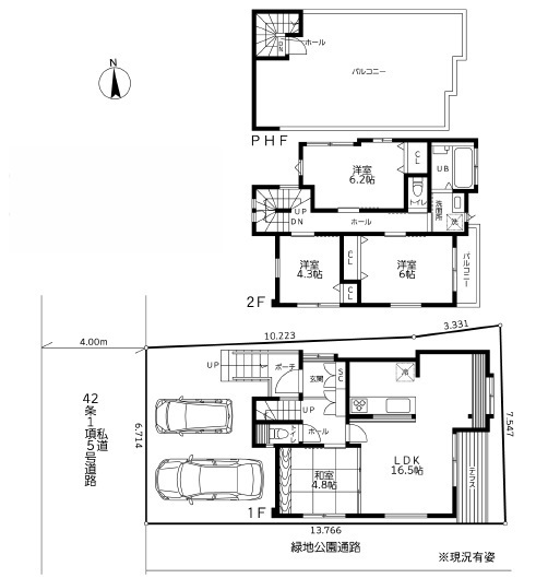 東葉高速鉄道【飯山満】駅徒歩12分 ! デザイン性の高い外観が魅力 広々としたスカイバルコニー カースペース(2台可)は出し入れしやすい並列タイプ