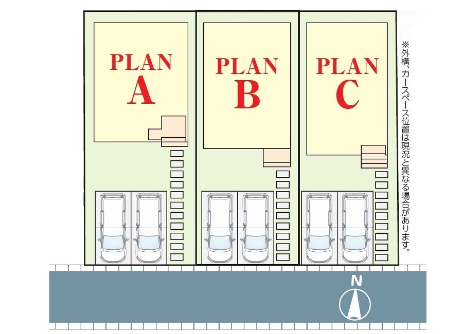 駅チカ!秋山駅まで10分の好立地 南道路で日当たり良好な全3区画の36~41坪の整形地 全棟カースペース並列2台 全居室収納スペース付き+2面採光 WIC 南向...