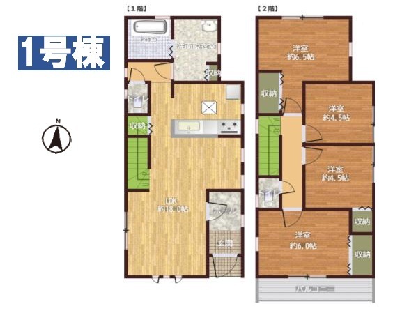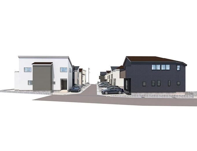 1号棟 建物完成・外構残し カースペース並列2台 太陽光発電搭載 17.75帖のLDK+5帖以上の4居室 お子様の個室もしっかり確保できます マスターベッドルー...