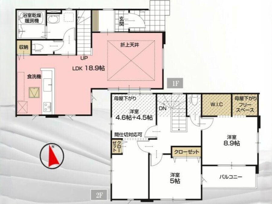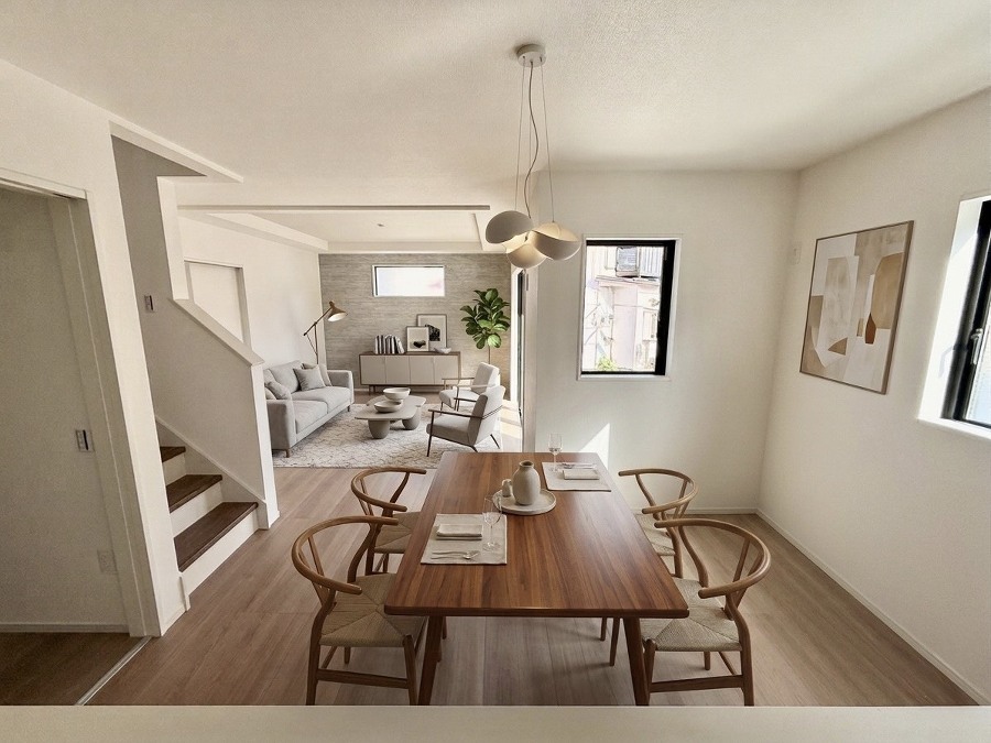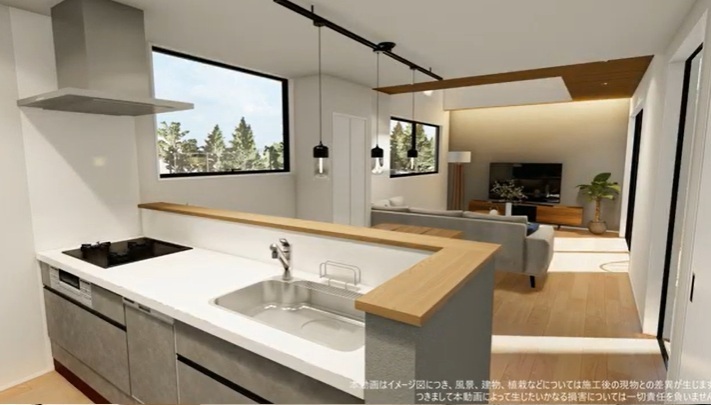 閑静な住宅街に登場したデザイン性の高い新築住宅 食洗機・浴室換気乾燥機・温水洗浄機能付便座・TVモニター付きインターフォンなど充実の設備と仕様が標準装備
