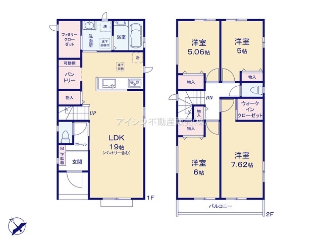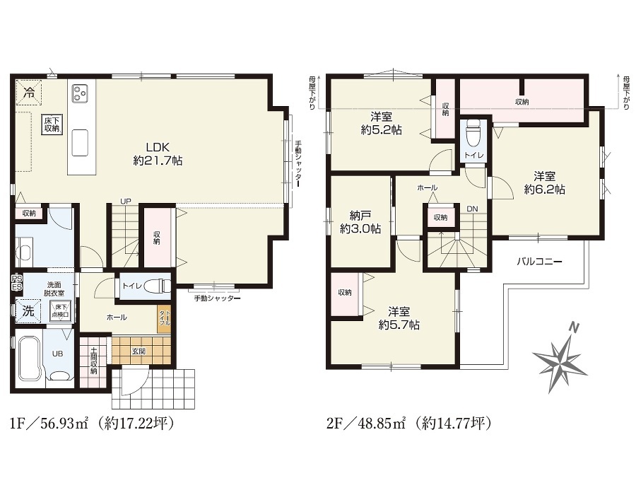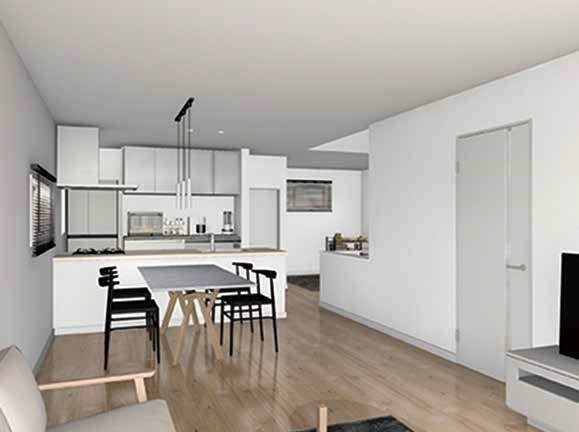 間仕切りで4LDKに対応可能 カースペース2台 土間収納・WIC・パントリー・納戸3帖 家事動線に優れた収納充実の家 キッチンを見渡せる21帖超のLDK 洗面室...