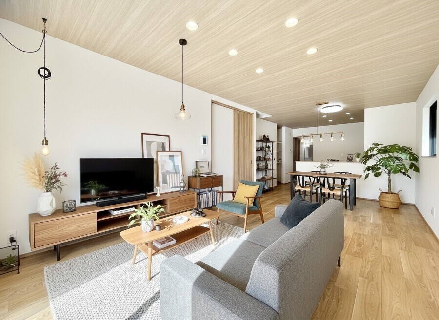 ずっと陽が注ぐ明るい室内で気持ちの良いリビング時間 開放感溢れる吹抜け ■全居室収納・ロフト■前面道路は大変静か■小学校・バス停至近■病院・文化施設等、便利な施...