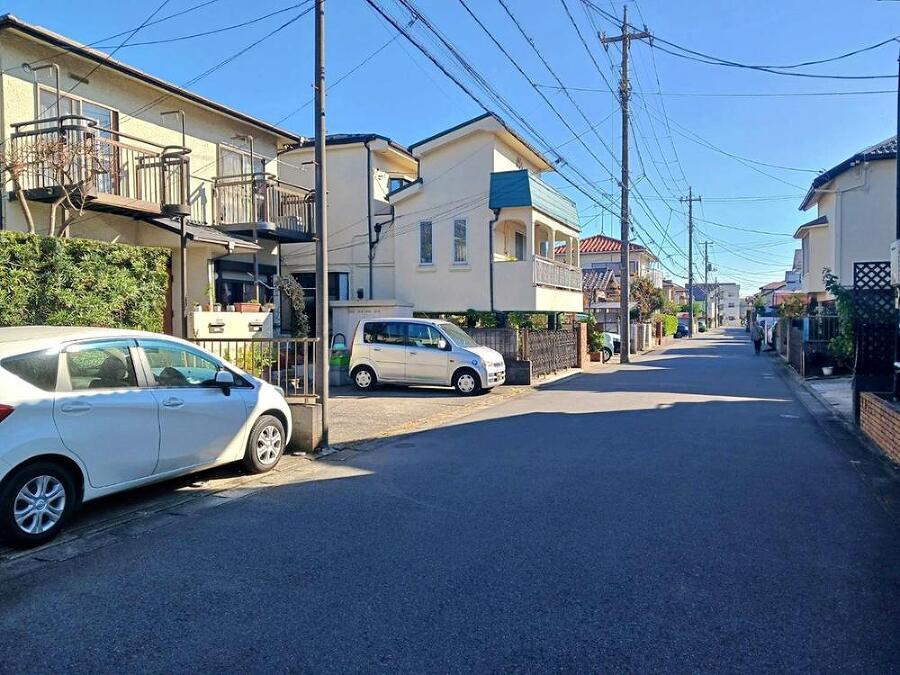 前面道路と高低差があるため 車通り・人通りも気になりません 陽当たり良好な閑静な住宅街 全居室収納スペース付き+南面採光 南向きワイド2面バルコニー