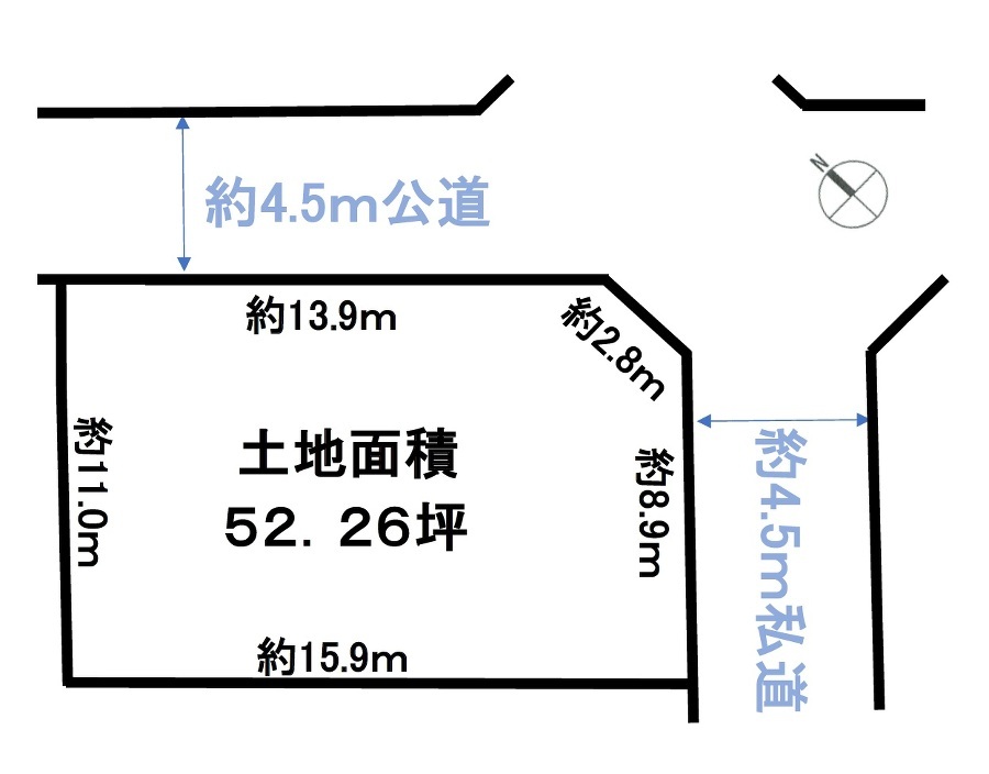 南東×北東道路で日当たり・通風良好な52坪超の整形角地 閑静な住宅街 国府台風致地区の落ち着いた住環境 現況更地・即建築可能 小学校まで1分!建築条件のない土地...